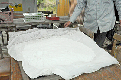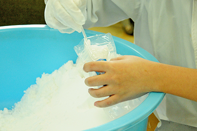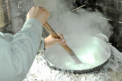 塩屋の荒磯の海水を使用し、釜炊き製塩法で『天然ミネラル塩』と副産物の『にがり』を製造している。