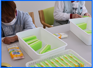 ① 生活介護事業所として、軽作業、機能訓練、レクリエーション、入浴機器による入浴等の支援を提供し、重度障害者の日中活動の拠点としての機能を充実させます。