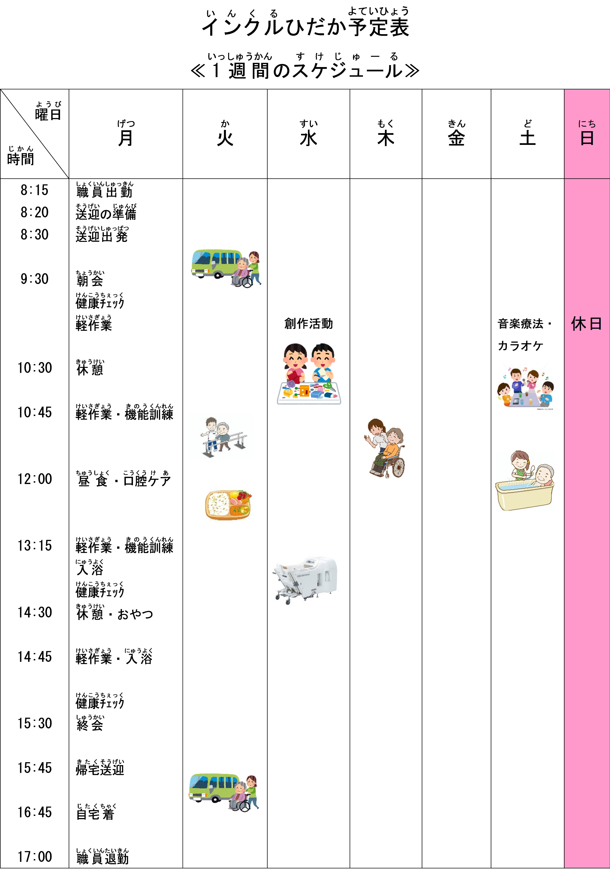 (2)施設種別:生活介護(主に昼間において、入浴・排せつ・食事の介護等を行うとともに、創作的活動や生産活動の機会を提供します。